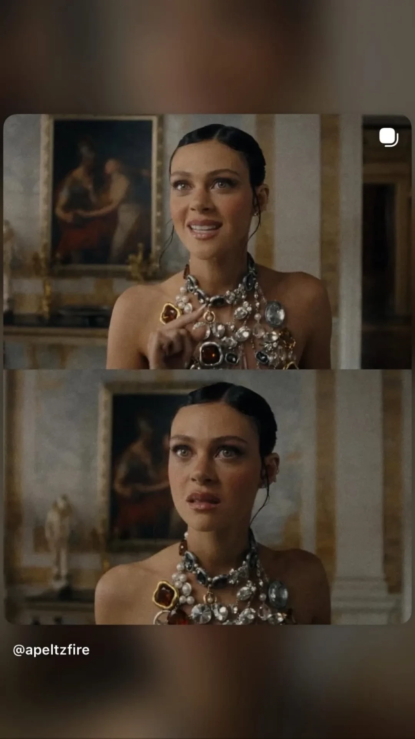 31-летняя Пельтц появилась в финальном эпизоде сериала "Красота" с Эштоном Кутчером в главной роли, сыграв "улучшенную" версию Фрэнни — жены его персонажа, которую играет 73-летняя Росселлини. При этом в одной из сцен Никола предстаёт в топе-колье из камней на голое тело, что стало аллюзией на знаменитый образ Росселлини в ленте "Смерть ей к лицу" Роберта Земекиса, которая вышла на экраны в 1992 году.