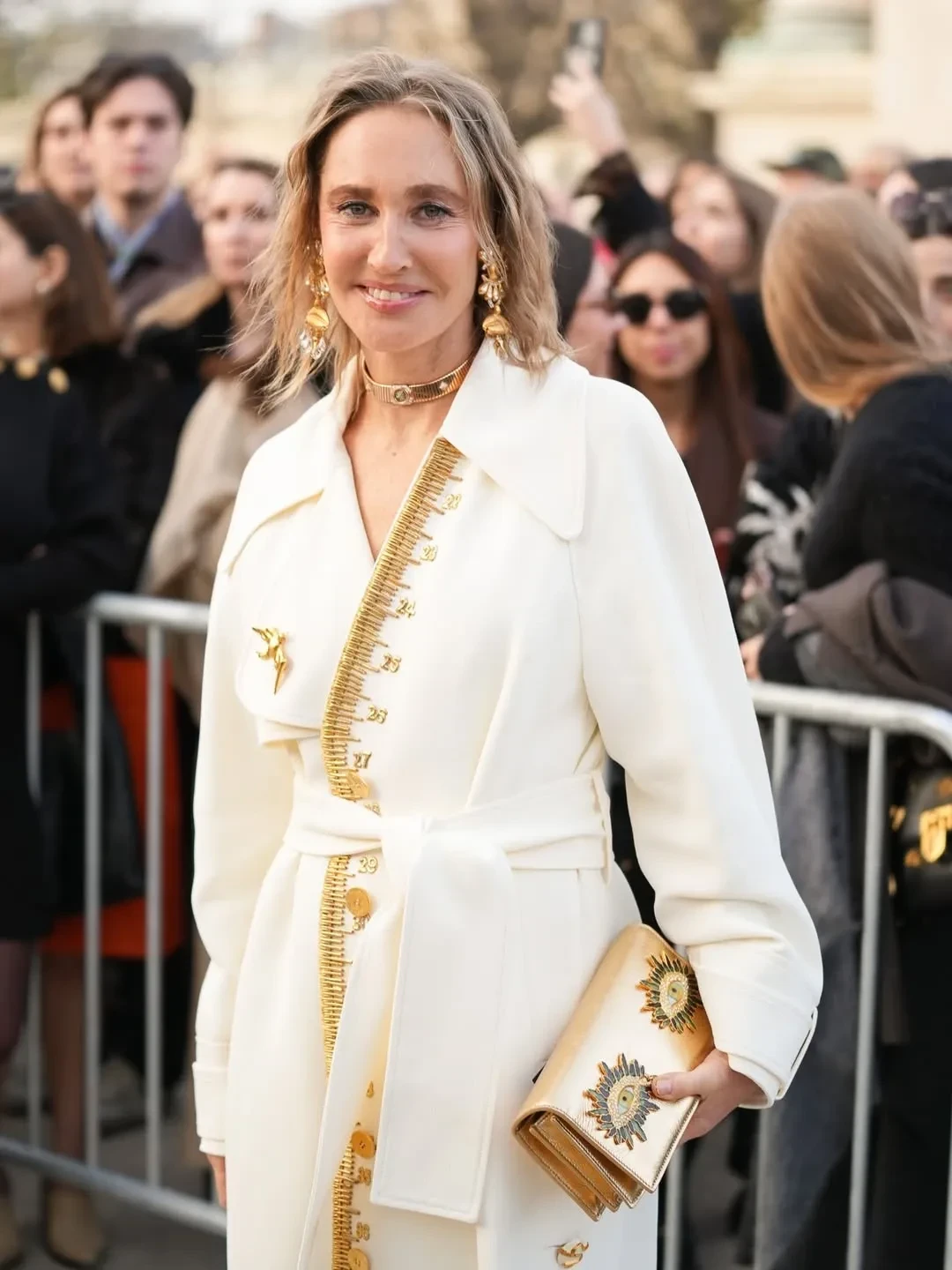 Татьяна Корсакова оказалась в центре внимания фотографов благодаря своему очередному яркому образу, который она подобрала для шоу. Модель надела золотой корсет, повторяющий изгибы тела, широкие белые брюки и шляпу. 31-летняя Кристина Романова и супруга ресторатора Станислава Лисиченко Дарья пришли в одинаковых жакетах, а жена бывшего гендиректора "Белой дачи" Владимира ЦыгановаОксана Бондаренко позировала в белом пальто с золотыми деталями.