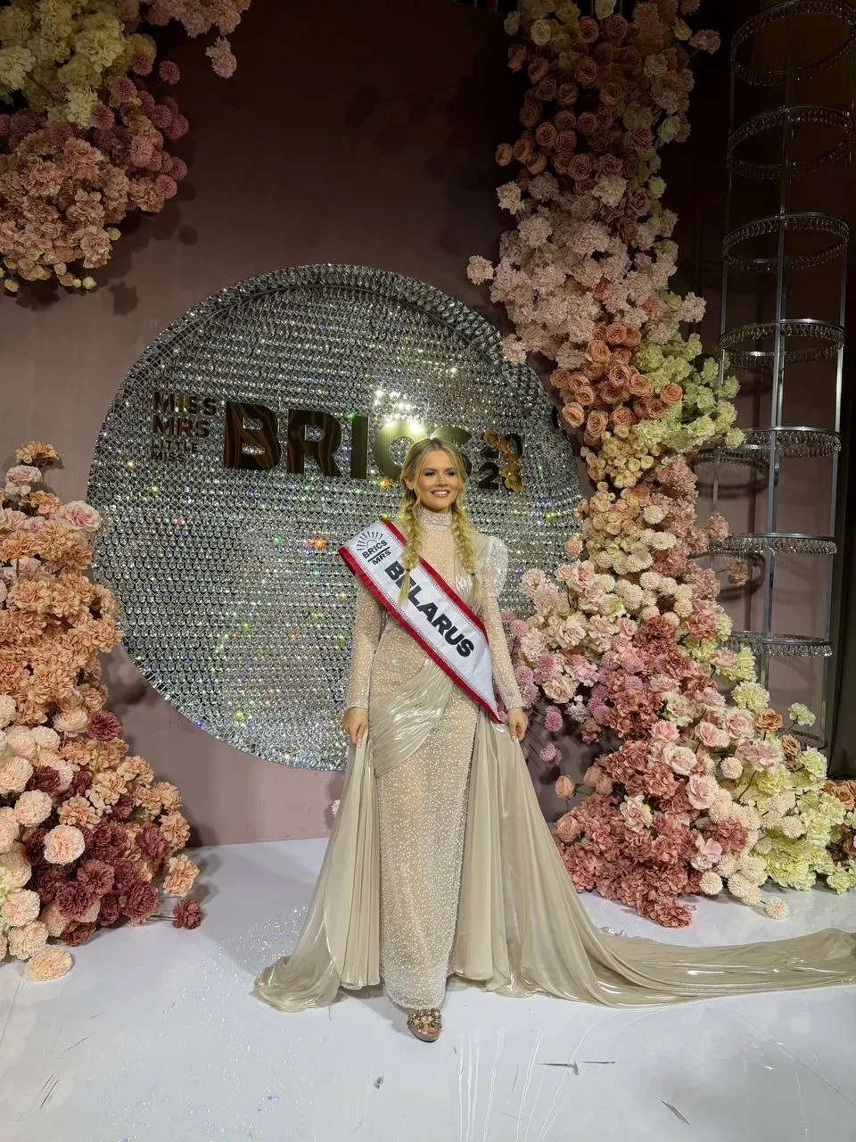 Валентина АлексееваВалентина АлексееваВалентина Алексеева, "Миссис БРИКС" Миллисент Мпхолоди Тлоу и "Маленькая мисс БРИКС" Думалаог Саффира Кара Гилле,Представительница ЮАРПредставительница БелорусииУчастница конкурсаАлексеева родилась в Чебоксарах, учится в Пироговском университете, планирует стать врачом-онкологом. В детстве занималась балетом, сейчас у неё есть собственный благотворительный фонд "Птица счастья". Ранее она завоевала титулы "Мисс Чувашия — 2023" и "Мисс Россия — 2024". В ноябре 2024 года представляла Россию на конкурсе "Мисс Вселенная" в Мексике, где вошла в топ-12 самых красивых девушек планеты.