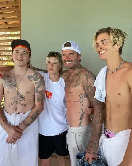 Что касается среднего сына Бекхэмов, 23-летнего Ромео, то он пробовал стать футболистом, но сейчас больше известен как модель. Встречается с моделью Ким Тернбулл, у которой прежде был роман с Бруклином. Из-за этого между братьями даже произошёл конфликт.