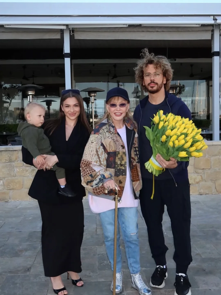 Пугачёва и Галкин* попали в объектив поклонницы во время прогулки по Лимасолу, где они последнее время живут с детьми. Пара согласилась попозировать для памятного фото: в кадре шоумен держит в руках букет жёлтых тюльпанов, а Пугачёва опирается на трость.