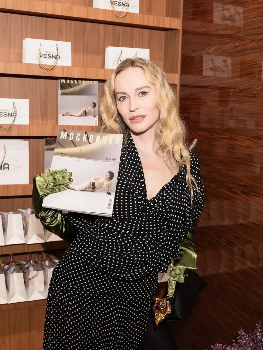 57-летняя Светлана Бондарчук пришла в платье с принтом и кожаном жакете, а 26-летняя Стеша Маликова, которая недавно вместе с другими звёздами "застряла" в Дубае, посетила светский ивент в бежевом тренче и очках. 43-летняя Наталья Давыдова позировала фотографам в платье в горошек с разрезом и зелёных перчатках.