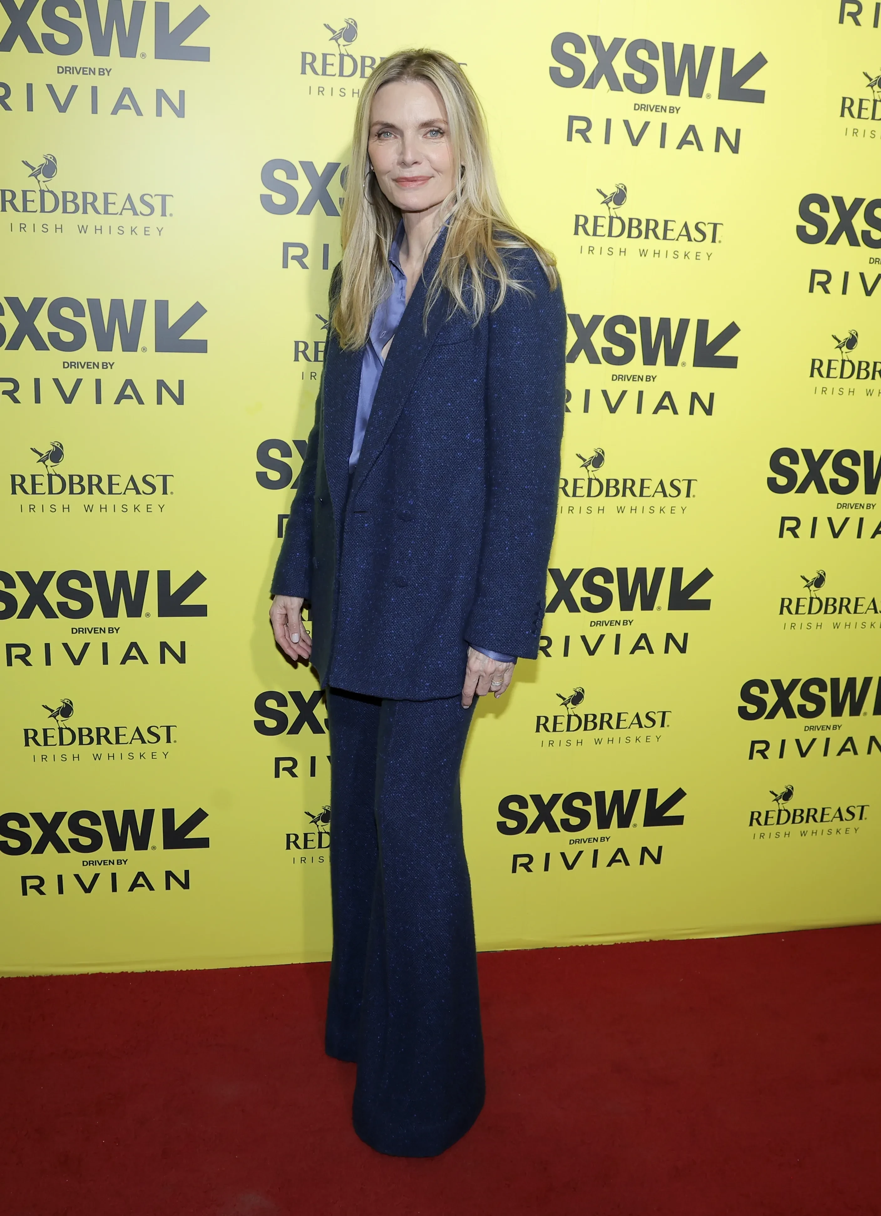 63-летняя Деми Мур появилась перед камерами в шелковом платье Saint Laurent с глубокими разрезами. 67-летняя Мишель Пфайффер отдала предпочтение классическому тёмно-синему брючному костюму с фактурным жакетом и широкими брюками, дополнив его шелковой голубой блузкой.