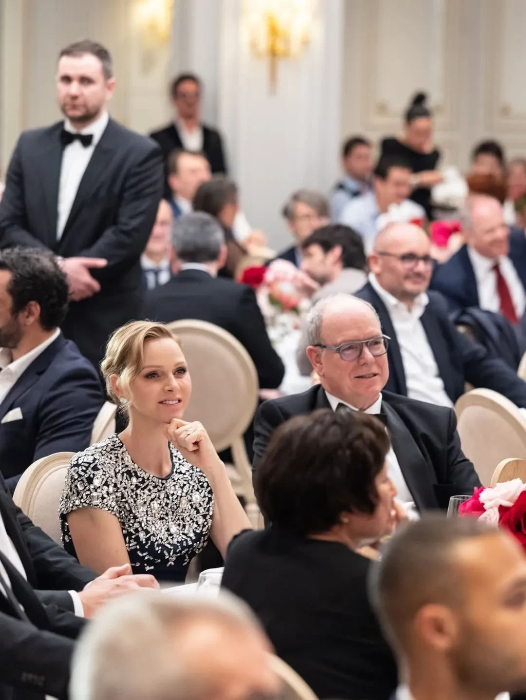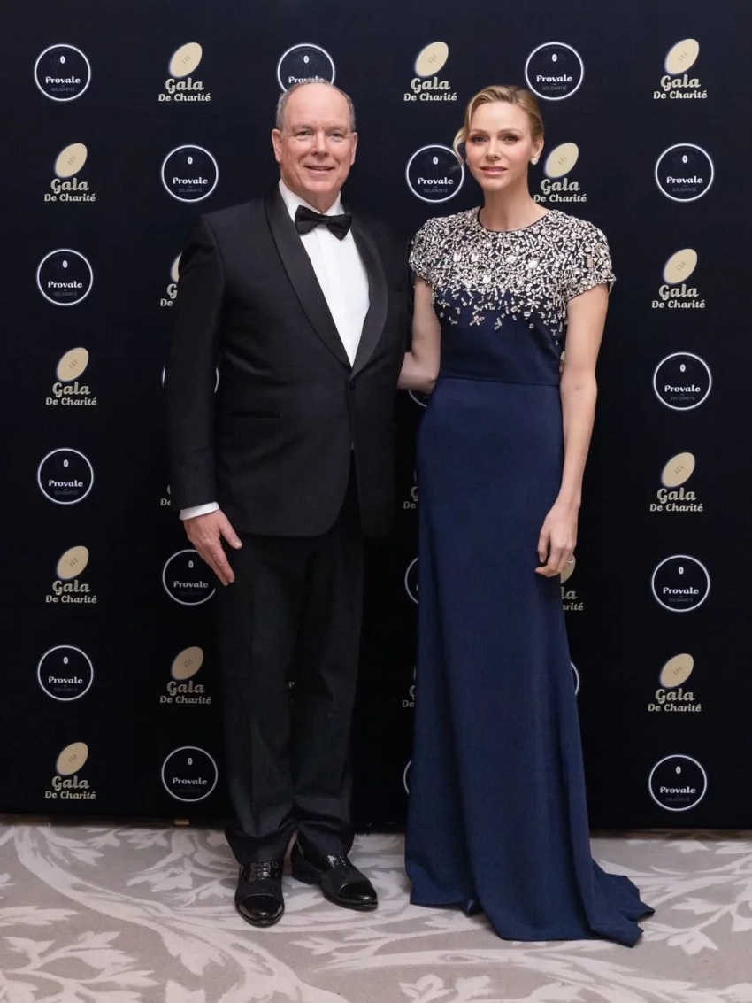 48-летняя княгиня появилась на мероприятии в синем платье в пол с серебристой вышивкой, а 68-летний князь Альбер надел классический чёрный смокинг. Гала-вечер организован национальным профсоюзом профессиональных игроков в регби в поддержку спортсменов, столкнувшихся с жизненными трудностями: травмами, финансовыми проблемами или необходимостью смены профессии после завершения карьеры.