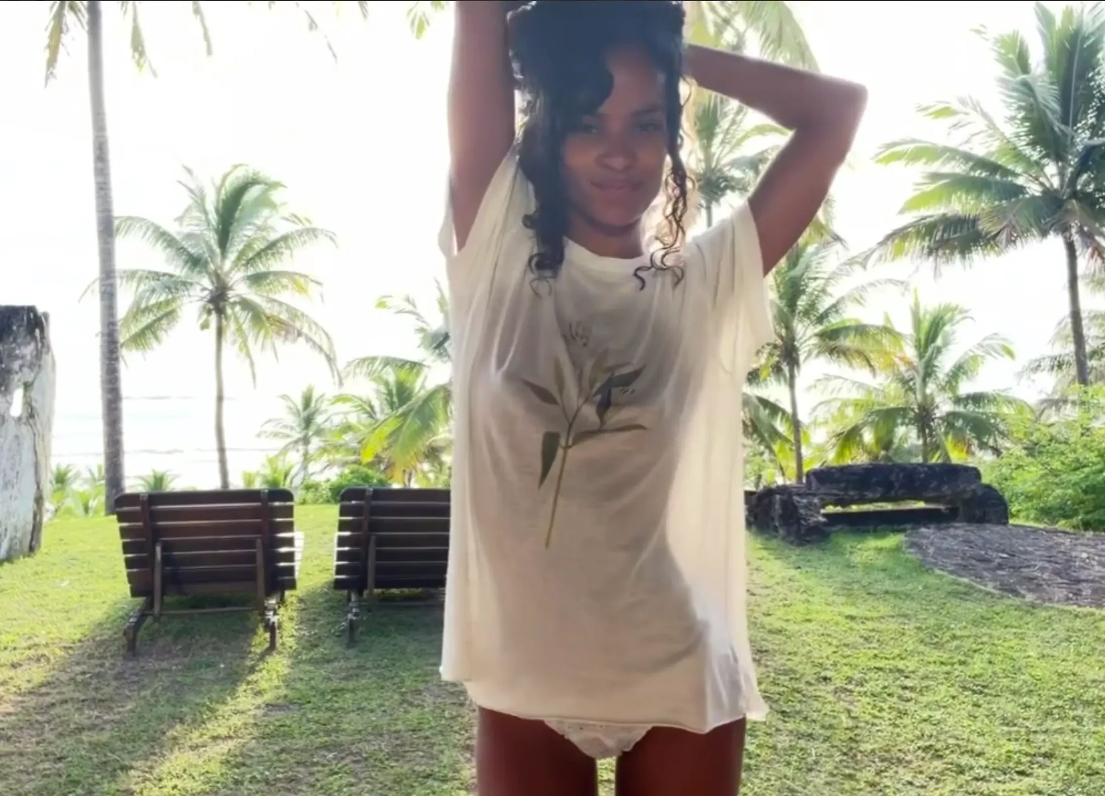 На снимках и видео, предположительно сделанных в Бразилии, Баптиста целуется с Касселем, обнимает 21-летнюю Деву Кассель в уличном кафе, позирует в бикини на пляже и гуляет по берегу с сыном.