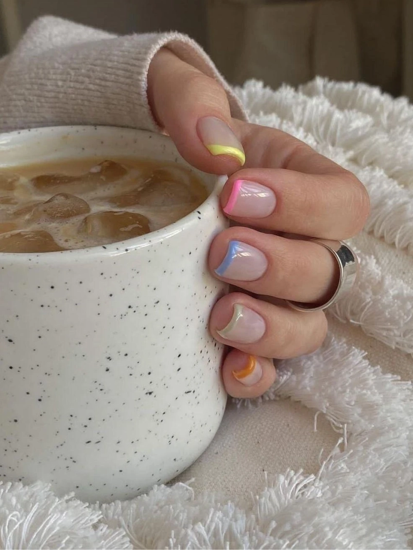 Здесь особенно важна база. Лучше выбирать оттенок, близкий к тону кожи: молочный, натурально-розовый или бежевый. На таком фоне цветная линия выглядит чисто и собранно.