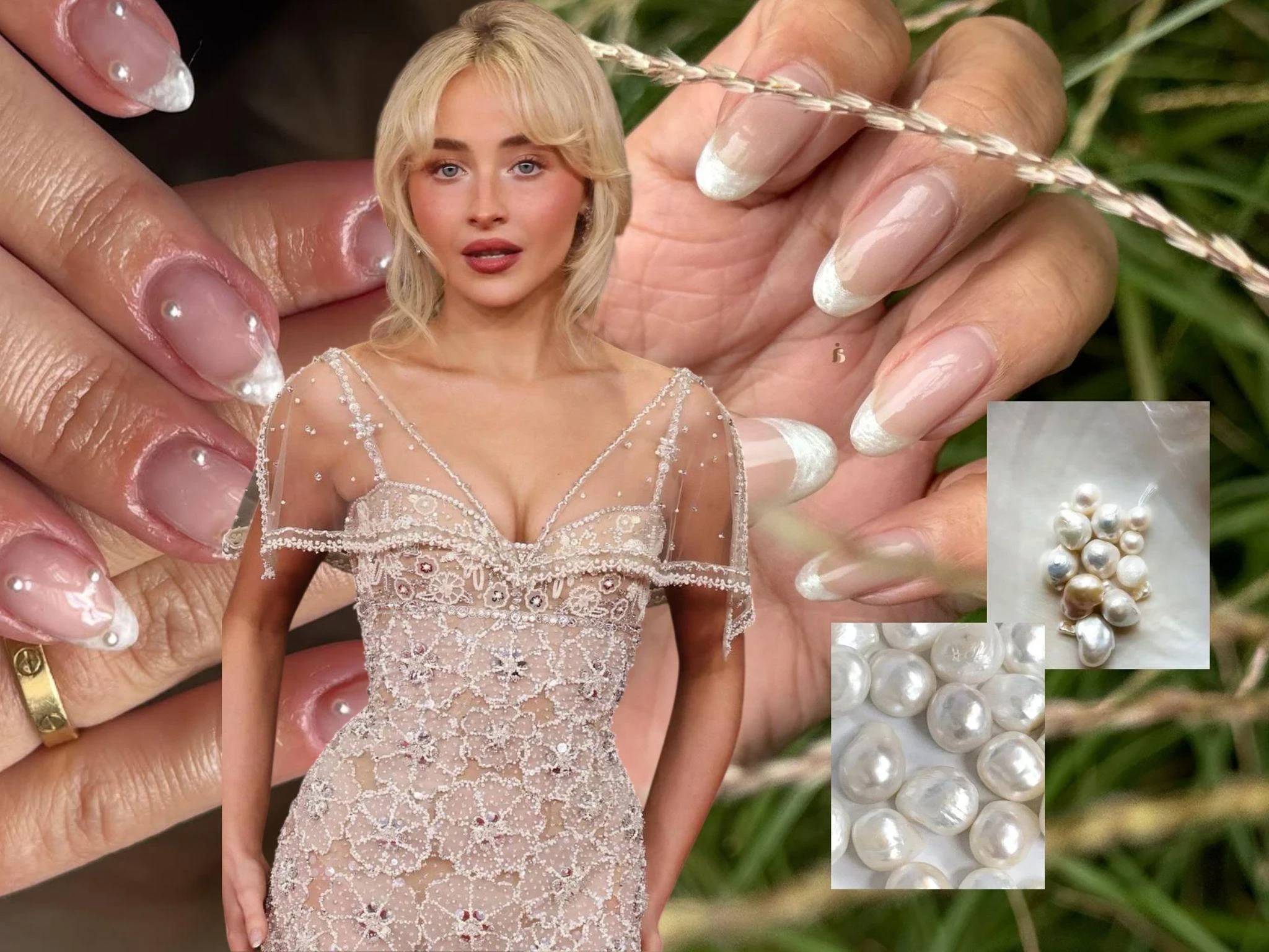 Этот дизайн впервые привлек внимание на церемонии «Грэмми», когда певица Сабрина Карпентер появилась с жемчужными кончиками на ногтях, идеально дополнив сверкающее телесное платье Valentino. Автор идеи — звездный мастер Зола Ганзорайт — создала тонкие перламутровые полоски, которые придали образу певицы утонченность и легкость. Даже если Сабрина ушла с премии без статуэтки, ее бьюти-образ стал настоящей победой среди трендов сезона.