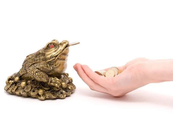 - символы богатства — монетки, фигурку лягушки с монетой, кораблик с парусами;